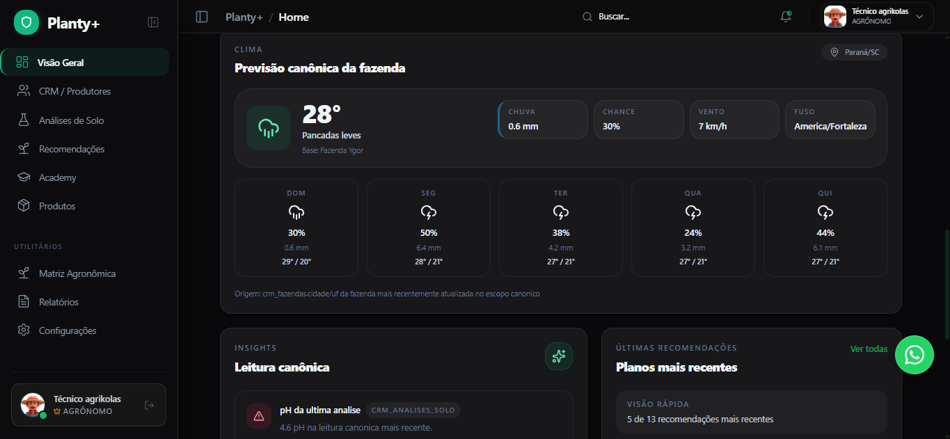 O Planty+ organiza o que hoje está espalhado e transforma em fluxo de decisão.