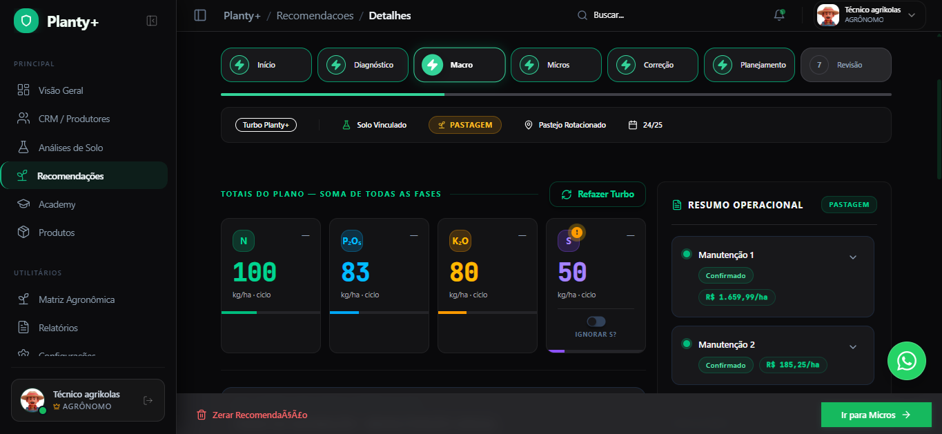 Enquanto outros só exibem dados, o Planty+ entrega a decisão pronta. Saia do achismo das planilhas e tenha o app técnico mais rápido do Brasil na palma da mão.